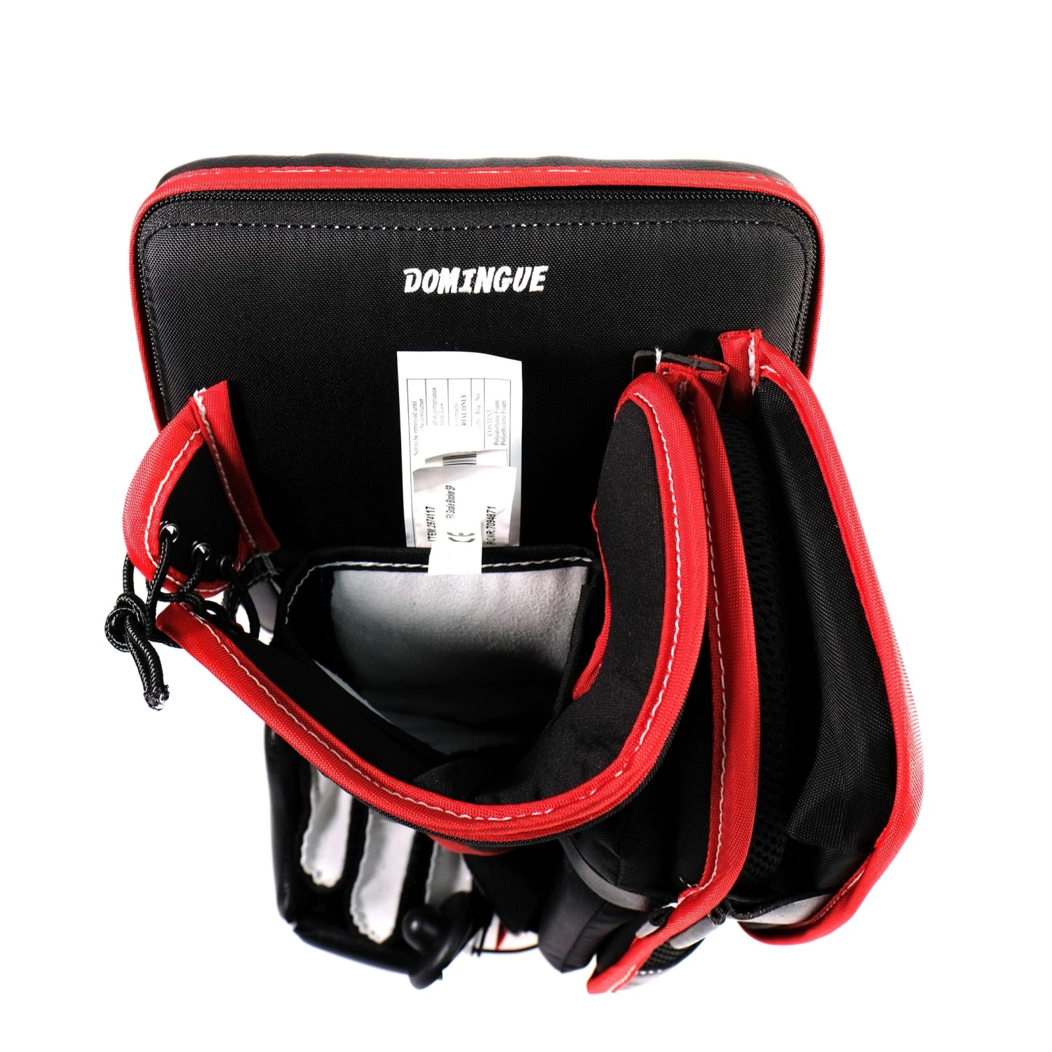 This custom CCM Extreme Flex 4 Pro goalie blocker is a pro return from NHL goalie Louis Domingue. This Full Right blocker keeps most of the Extreme Flex 4 Pro specs with additional custom graphics and embroidery. The mainly Jenpro exterior is a popular choice used by many goalies on their gear due to its lightweight feel and durability. Inside the Blocker board is custom “Domingue” embroidery an a Kay Whitmore signature approving it for use in the NHL.