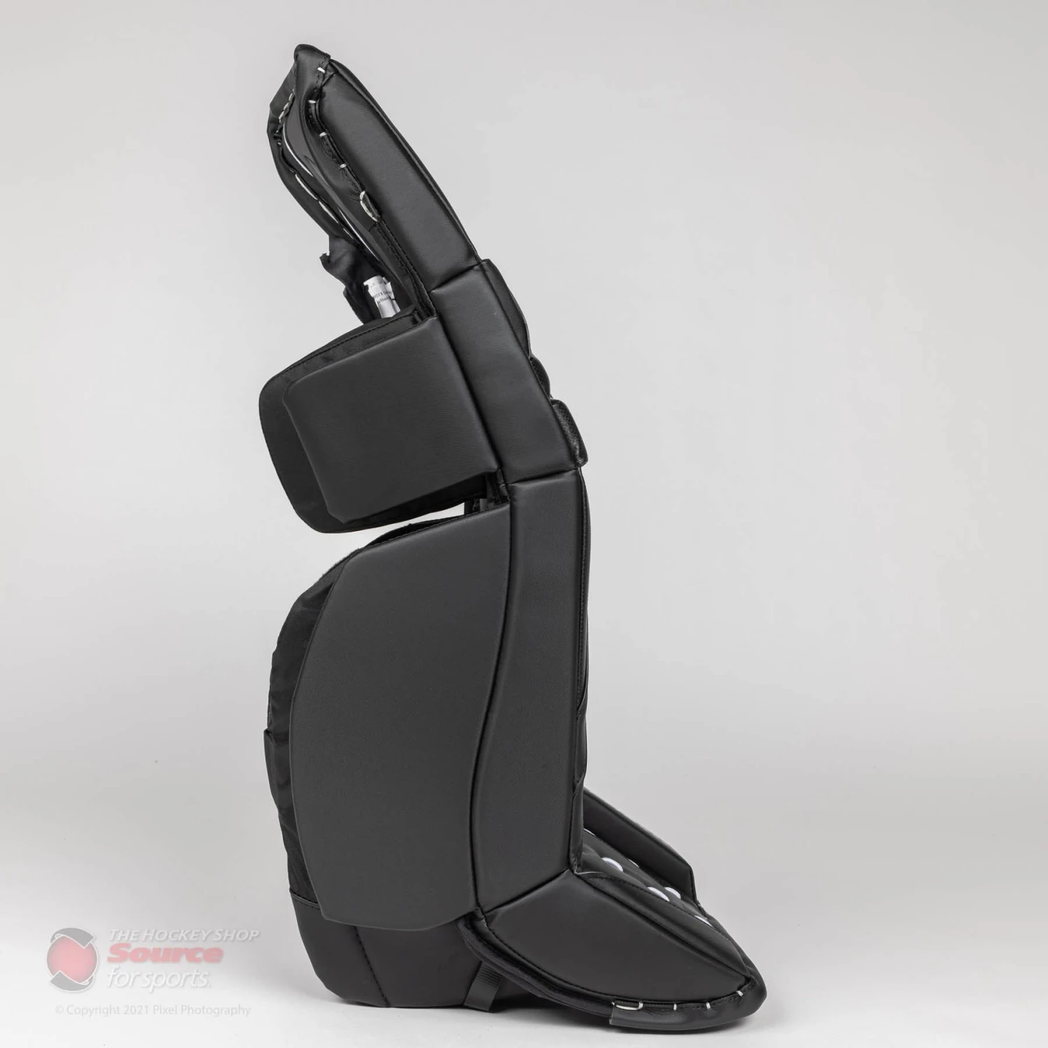 The break setup on the Eflex E5.5 SDC consists of one outer break, paired with an internal pre-curved single break. This gives goalies flex at the knee and five hole closure, while maintaining the pad’s seal to the ice.
