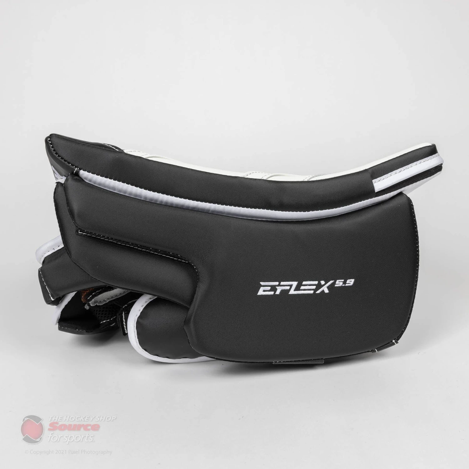 The adjustable FlexMotion cuff on the E5.9 gives goalies ample mobility, while the velcro cuff allows goalies to customize their fit.