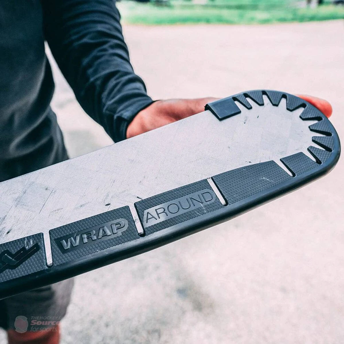 The Hockey Wrap Around Stick Tape allows you to use your favorite stick off the ice and on any surface. The lightweight plastic, snap-on blade tape offers maximum durability and lets you play on any rough surface without damaging your blade. Weighing in at approximately 39 grams, the Hockey Wrap Around tape is made completely out of privately formulated plastic and is tapered to fit a wide range of sticks. The Hockey Wrap Around Stick Tape is offered in two colors, black and white.