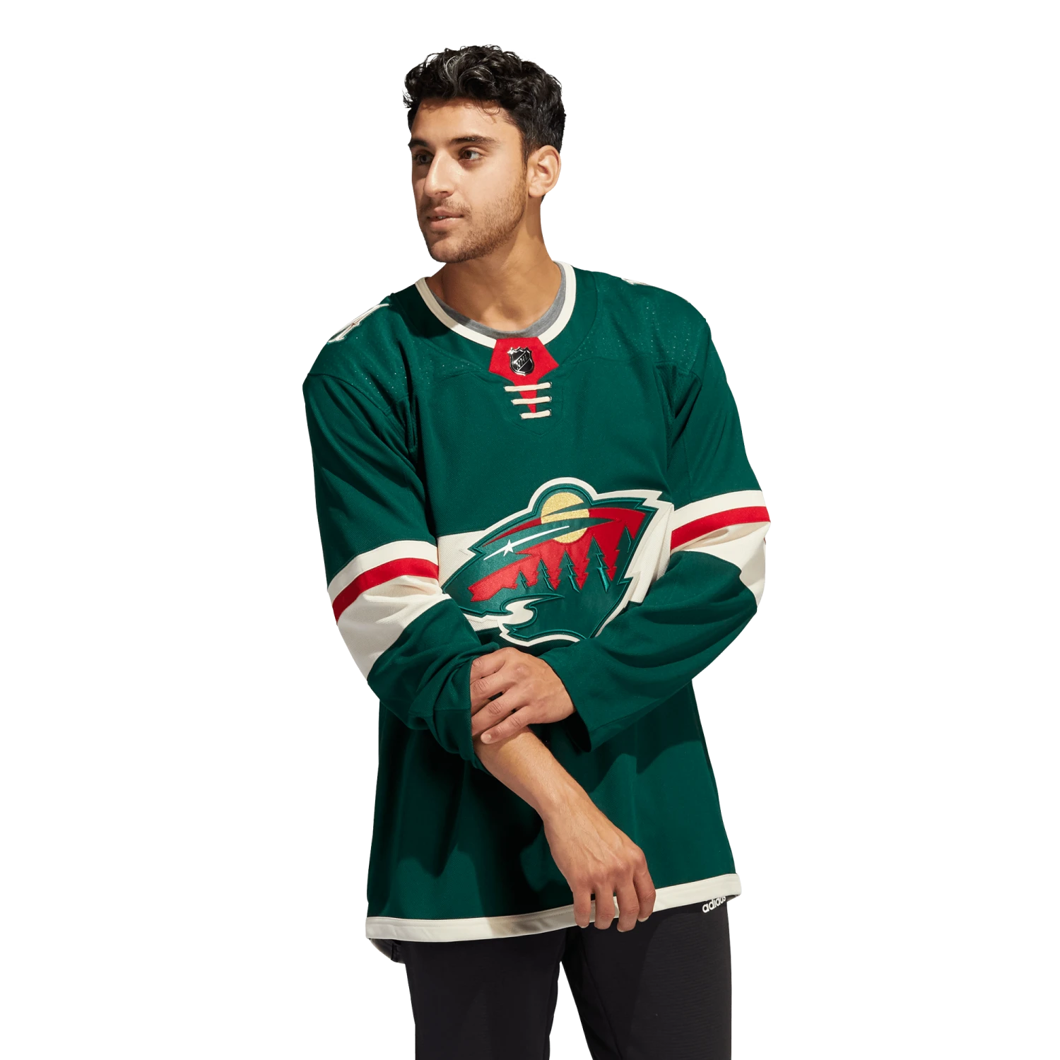 Pull on this adidas Minnesota Wild authentic home jersey, and get the gang together for game night in your fan cave. AEROREADY keeps you cool and dry as you wait for the puck to drop at center ice. The big crest out front, shoulder patches and a fight strap with a snap closure keep the look legit. This product is made with Primegreen, a series of high-performance recycled materials.
