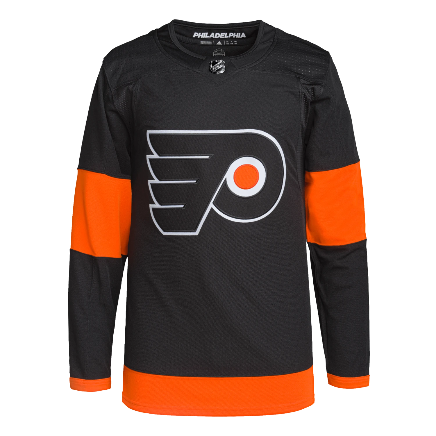 Pull on this adidas Philadelphia Flyers authentic alternate jersey, and get the gang together for game night in your fan cave. AEROREADY keeps you cool and dry as you wait for the puck to drop at center ice. The big crest out front, shoulder patches and a fight strap with a snap closure keep the look legit. This product is made with Primegreen, a series of high-performance recycled materials.