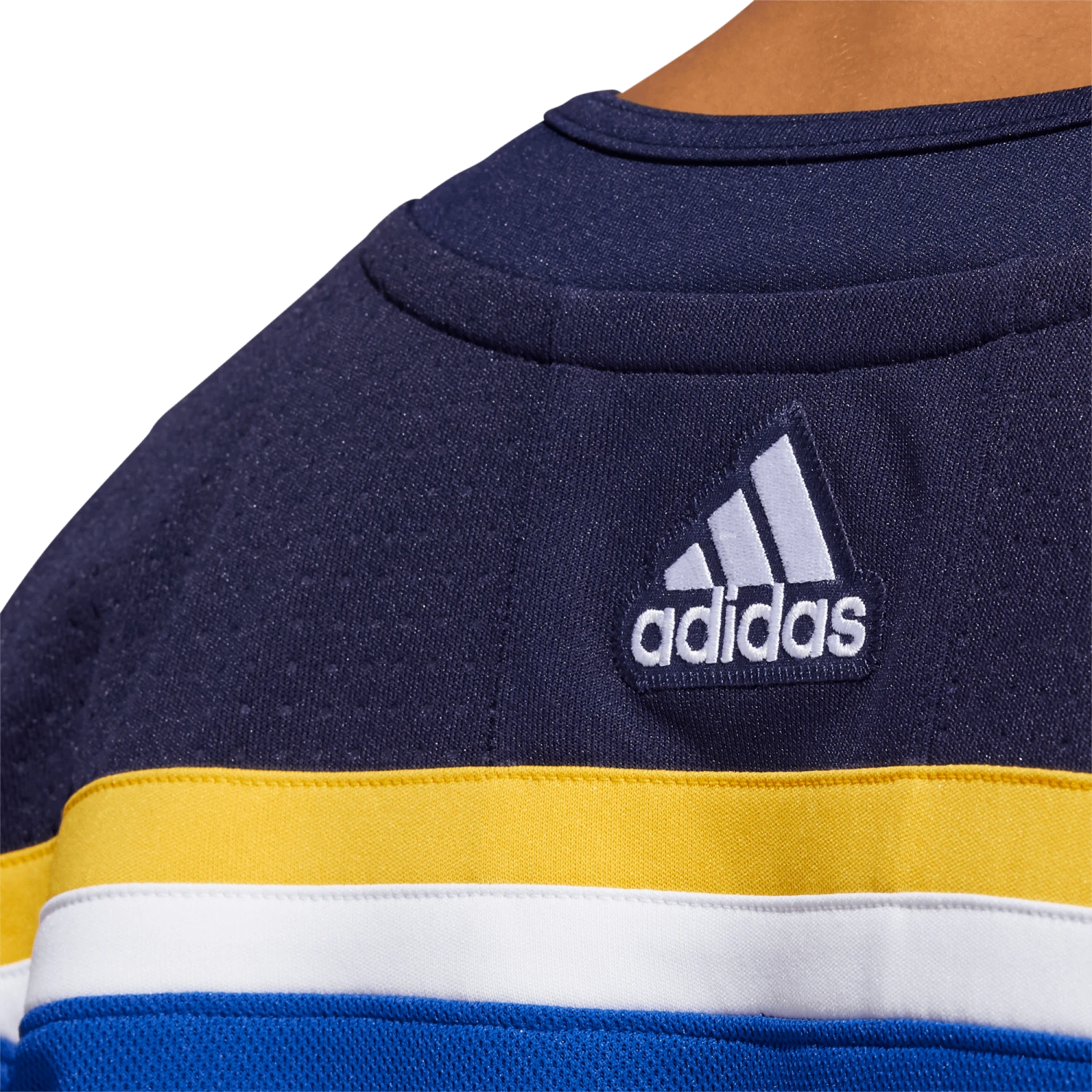 Pull on this adidas St. Louis Blues authentic home jersey, and get the gang together for game night in your fan cave. AEROREADY keeps you cool and dry as you wait for the puck to drop at center ice. The big crest out front, shoulder patches and a fight strap with a snap closure keep the look legit. This product is made with Primegreen, a series of high-performance recycled materials.