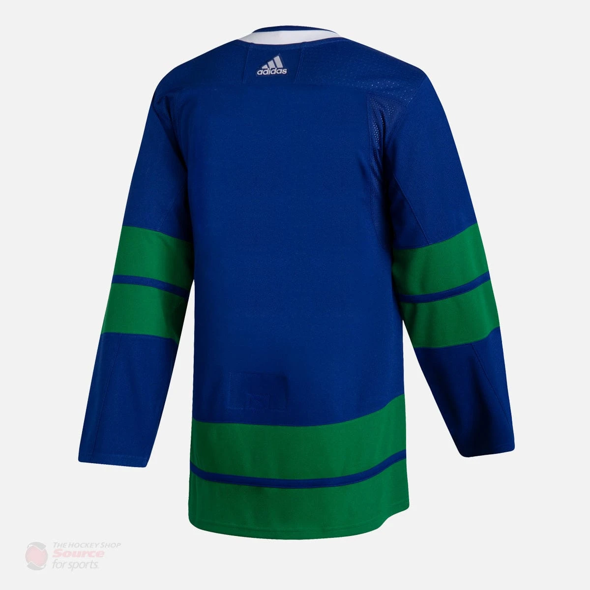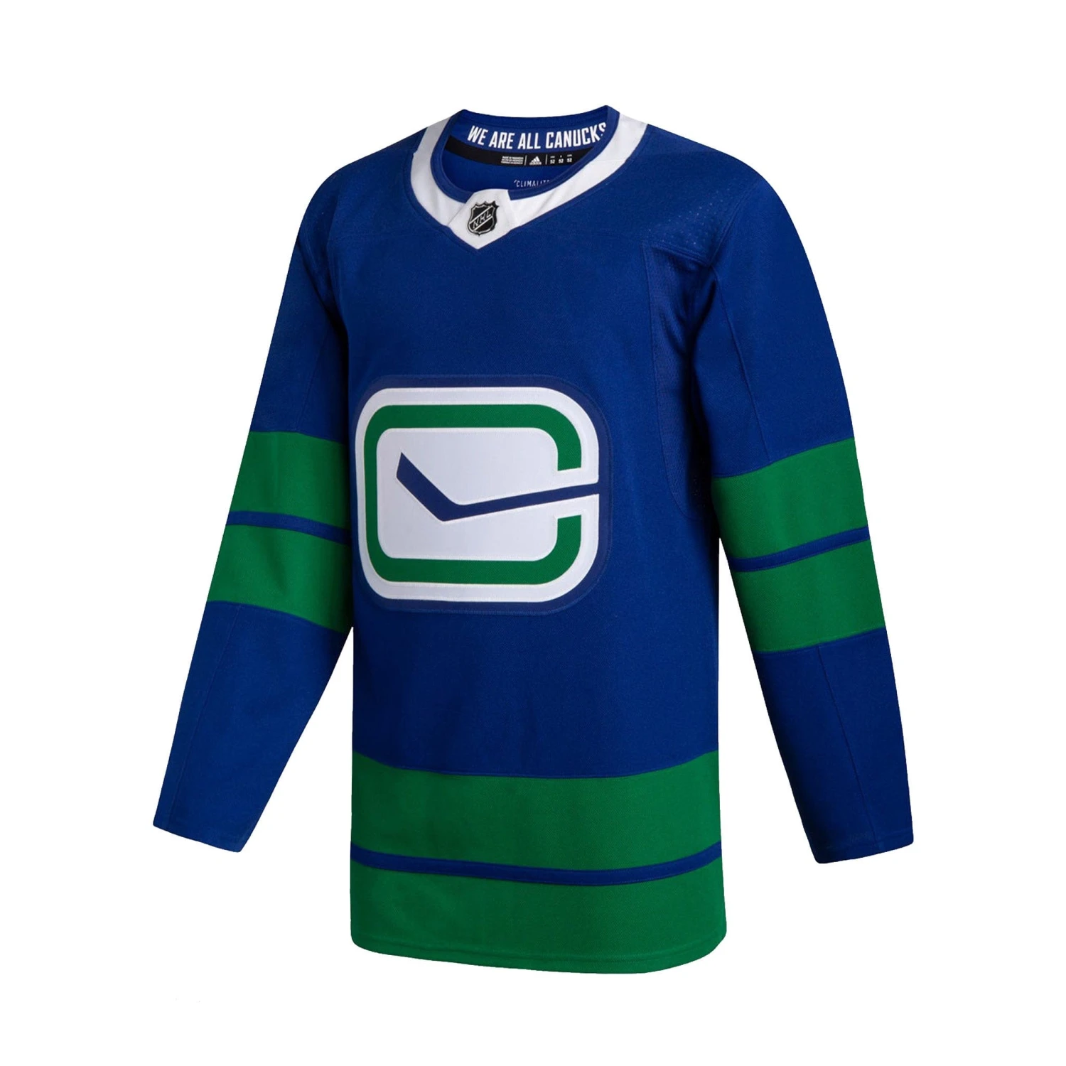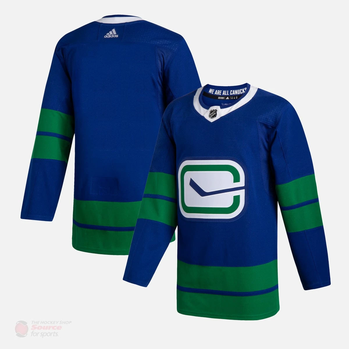The Vancouver Canucks Alternate Adidas Authentic Senior Jersey is an officially licensed jersey of the NHL. The new and improved authentic team jerseys show your devotion to your favourite team, with the addition of the original Adidas climalite technology to maximize mobility and enhance performance. The new touch of the sewn, platinum NHL Shield under the front collar gives these jerseys its finishing touch on becoming the new look of the NHL.