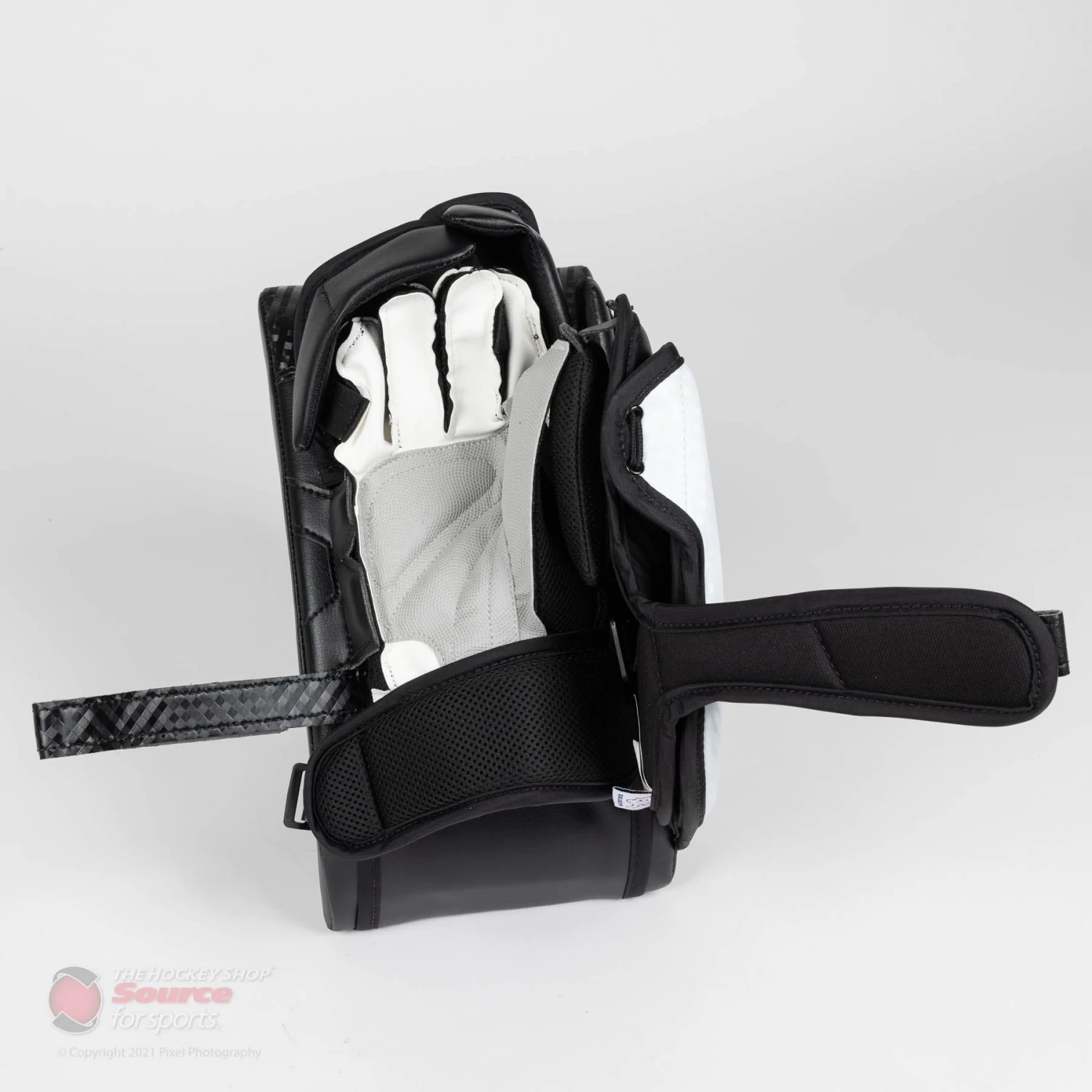 The thumb of the V9 Pro Carbon uses a moulded Pure Carbon insert in order to offer superior protection while the finger guards use a composite core and HD foams. The back of the fingers use HD foam padding to catch anything that passes by the large finger protectors. Finally, a large sewn in floating index finger protector sits flush with the stick to catch pucks riding up the paddle.