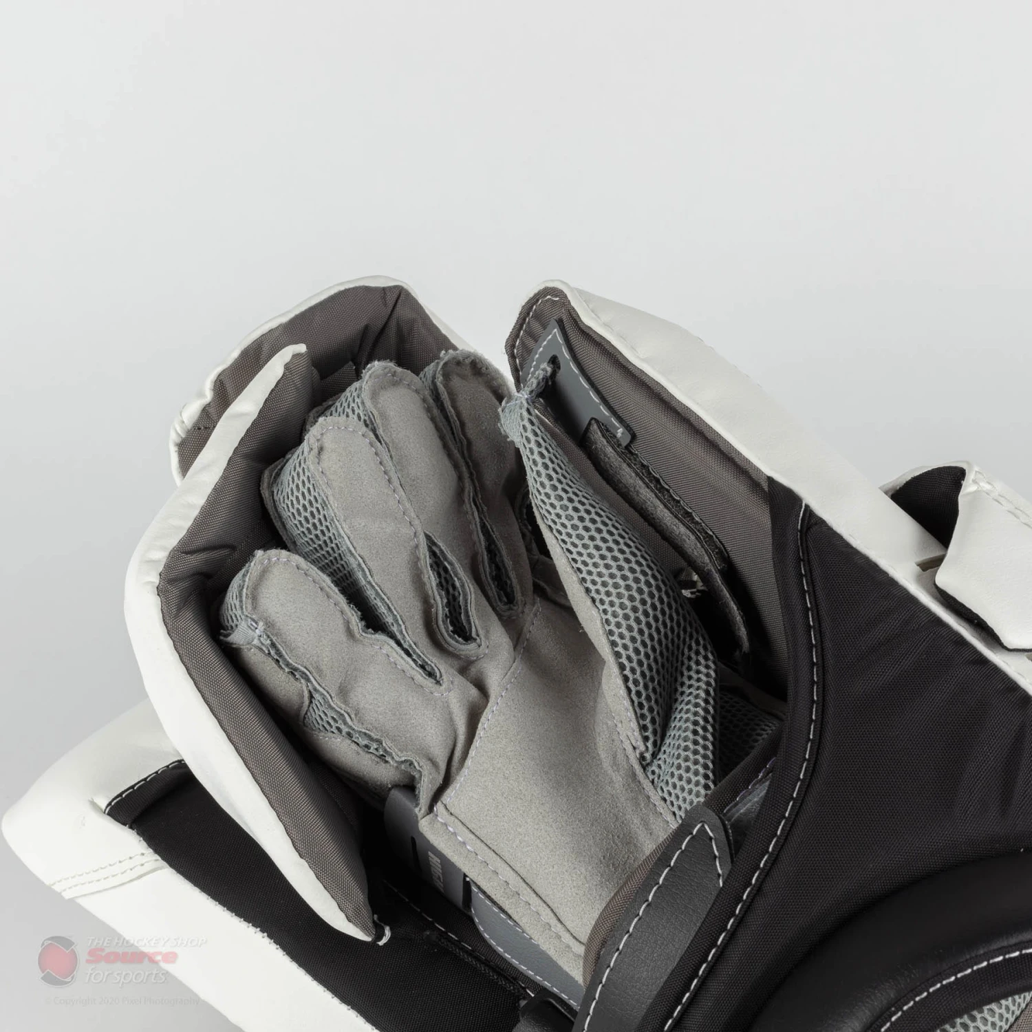 The side board of the blocker features ample finger protection, designed to fit the goal stick without any weak spots or interference.